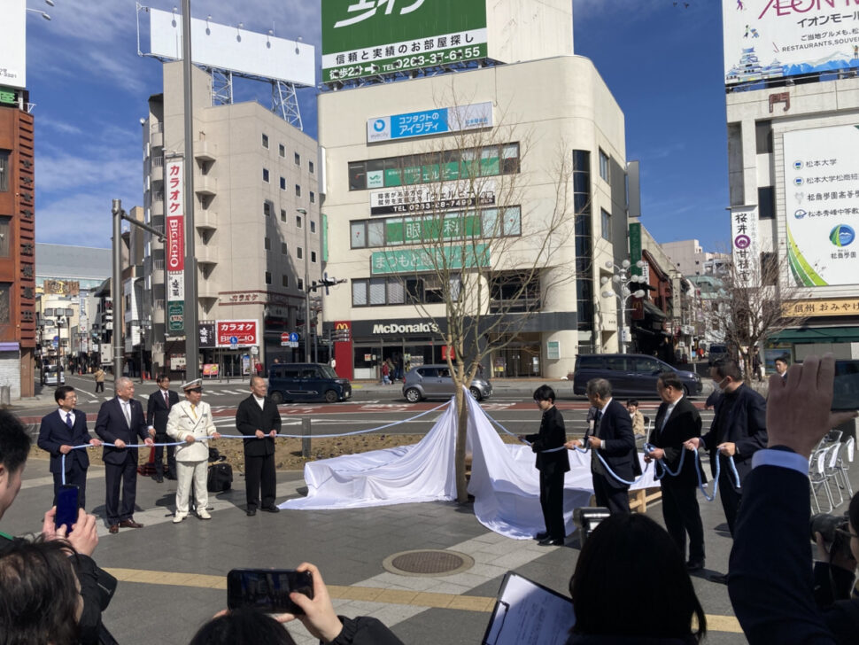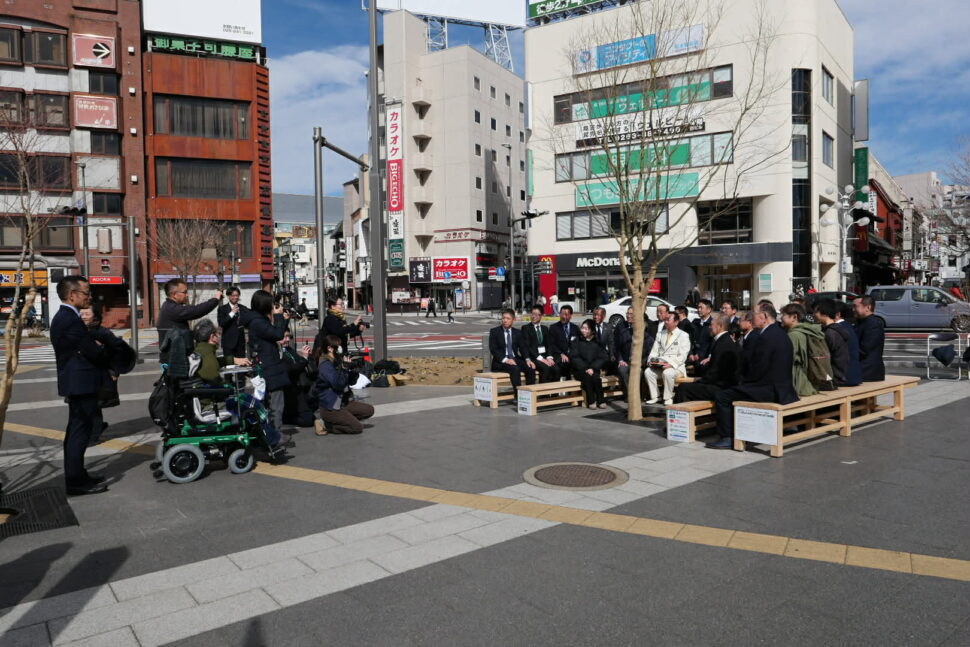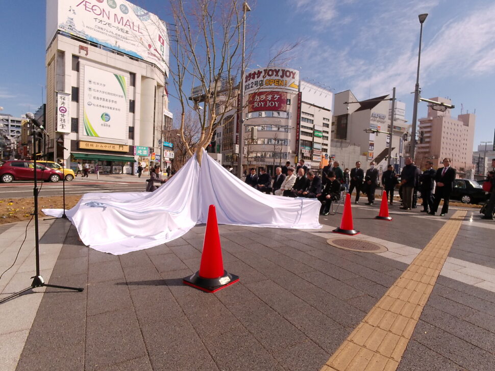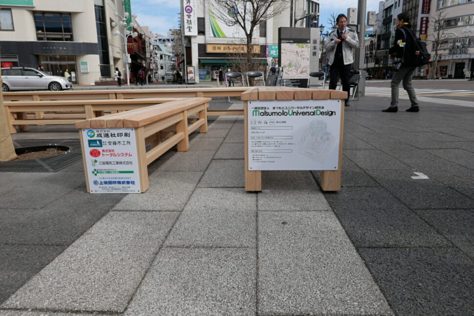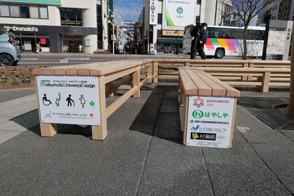 2023年ながのユニバーサルデザインアイディアコンクールで「こんなベンチがあったらいいね」をテーマに作品を募集し、金賞を受賞した「だれでもベンチ」(当時小学生、現中学生)を研究会で具現化し松本駅前公園に設置されることになり、2月21日に金賞に輝いた本人、臥雲松本市長、松本駅長、松本市関係者、研究会員等々が参加して設置除幕式がおこなわれました。